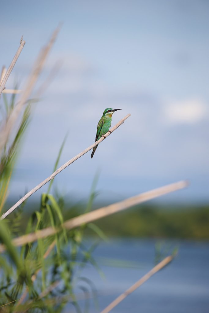 Across our mosaic of riverine forests and open plains, a rich variety of these seasonal visitors can be seen. Along the riverbanks, the Blue-cheeked Bee-eater dazzles with its yellow-green plumage and vivid blue cheeks. Having travelled thousands of kilometres to reach Southern Africa, these highly aerial hunters sweep out in graceful arcs to snatch insects mid-flight, adding a luminous flash of colour to the river edges.